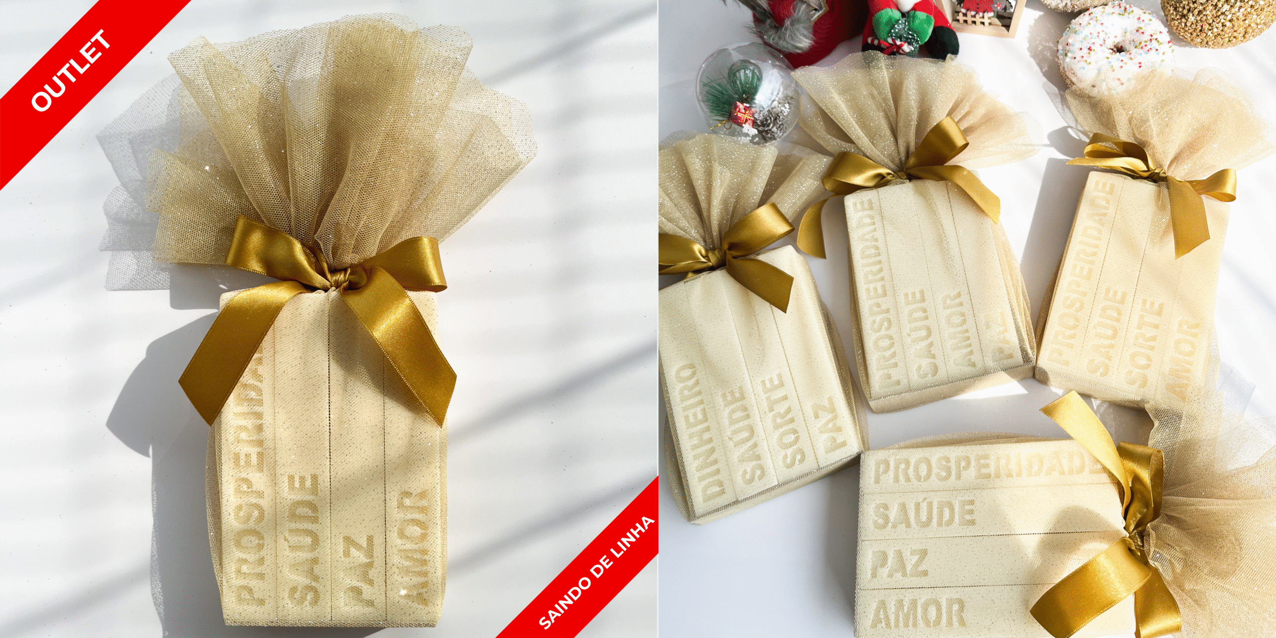 A proposta mais requintada da Zenvelas! Vai dentro da caixa branca com fita de cetim dourada.