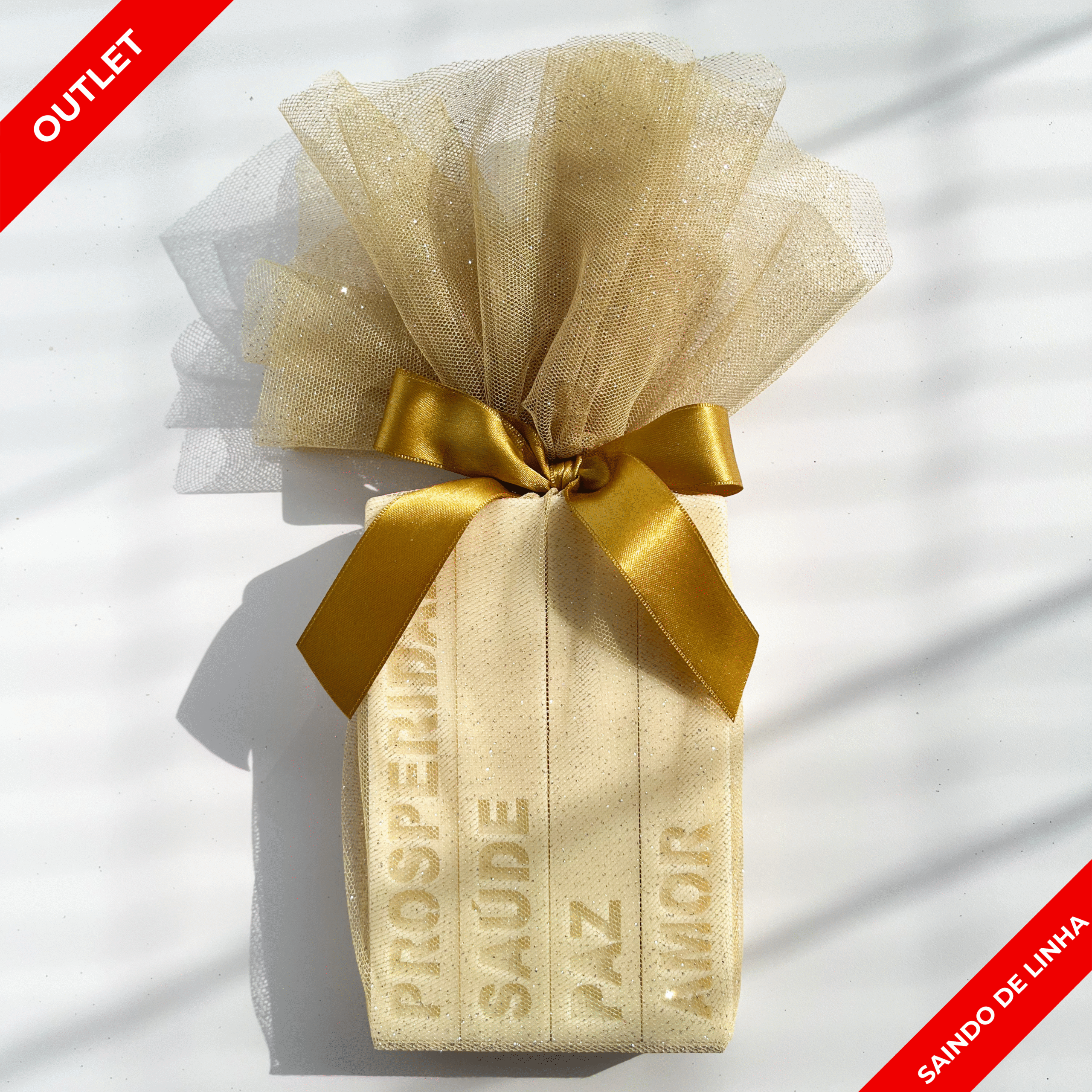 - Embalado no tule dourado com gliter